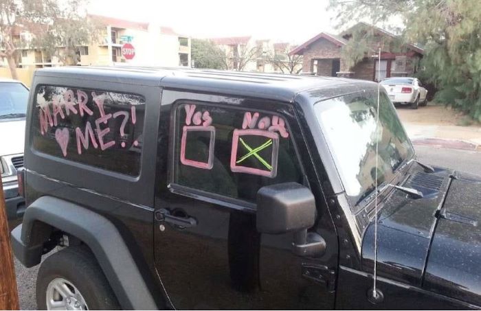 (7) Félidő, chips elfogyott, sör kell. A férfi ekkor úgy érezte, itt az ideje: „Drágám, hozz egy sört… ja, és lennél a feleségem?” Megható. Vagy hát… valami olyasmi.