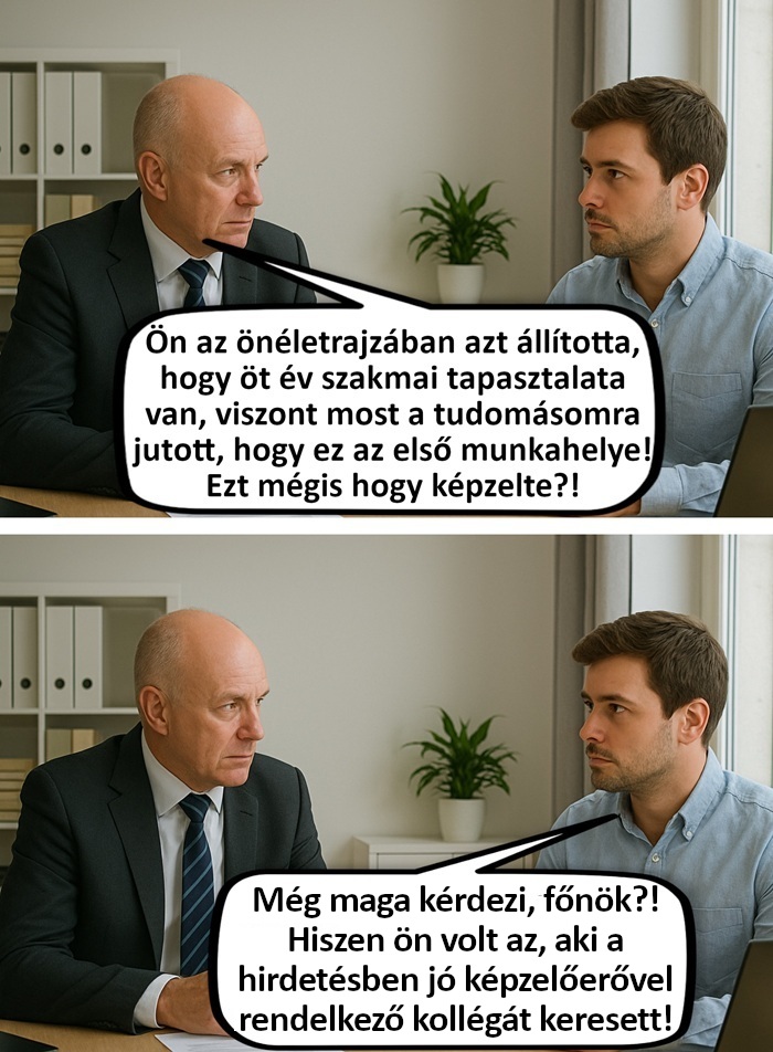 15. Reméljük, hogy egy ilyen frappáns válasz még a főnök jókedvét is visszahozta, és a kolléga továbbra is ott maradhatott, hogy a humorával javítsa a munkahelyi légkört.