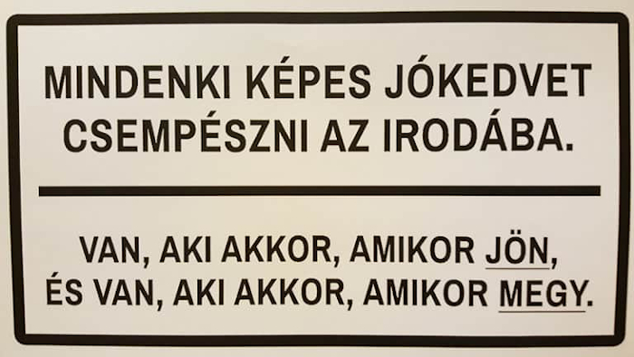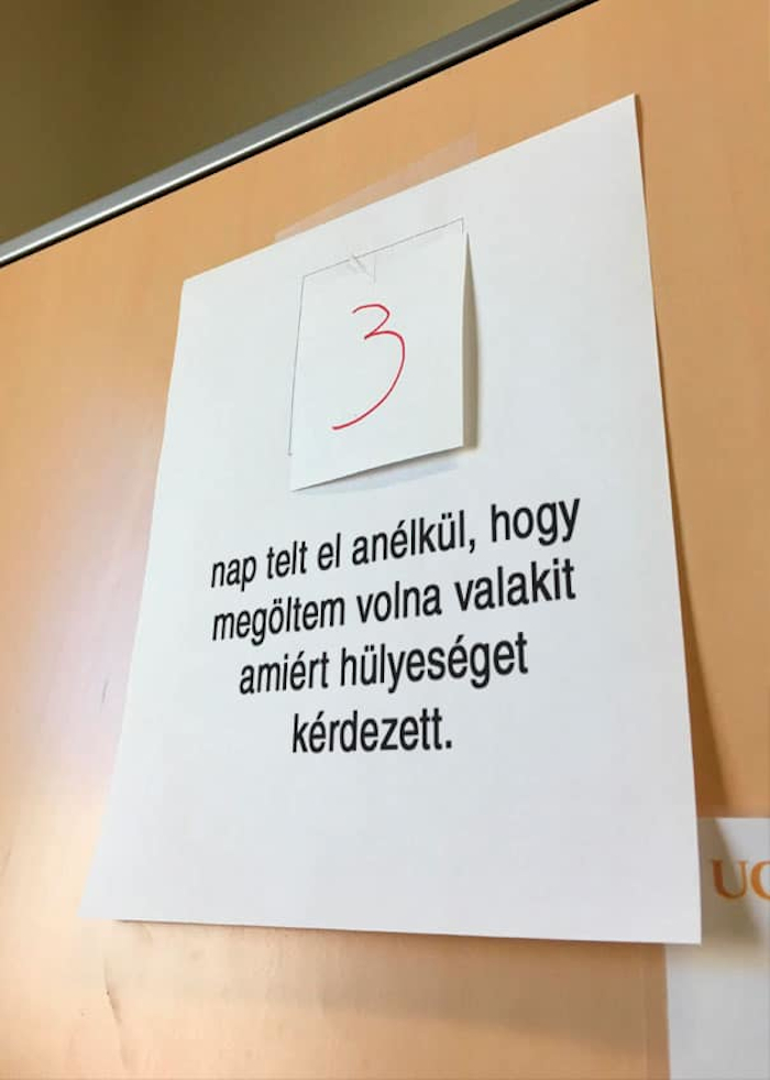 13. Az egyik munkatársunk kitett egy táblát az irodába, amin egy óriási igazság áll.