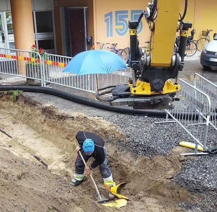 2. A kollégám nem akarta, hogy megázzak, ezért tartott egy esernyőt a fejem fölé munka közben.