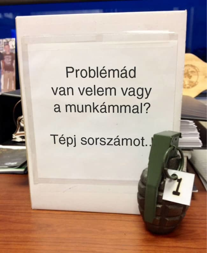 1. Még a főnök sem mer kötözködni ezzel a kollégával, mióta ez díszíti az asztalát: