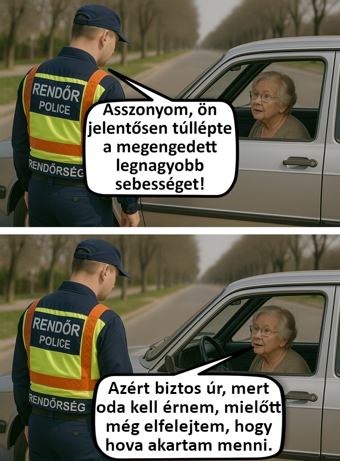 17. A néni az öniróniára és a humorára támaszkodva megpróbálta kivágni magát a rendőr előtt.