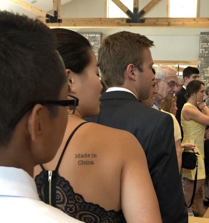 14. Egy összejövetelen láttam egy hölgyet, akinek ez a szöveg volt a hátára tetoválva: „Kínában készült.”