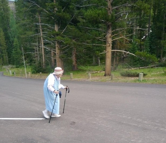 2. Elmentem túrázni, és nagyon büszke voltam magamra, hogy milyen jól bírom. 7 km után egy kicsit megálltam pihenni, majd pár perc múlva ez a néni húzott el mellettem. Csendben felálltam, és folytattam a túrát a néni után kullogva.