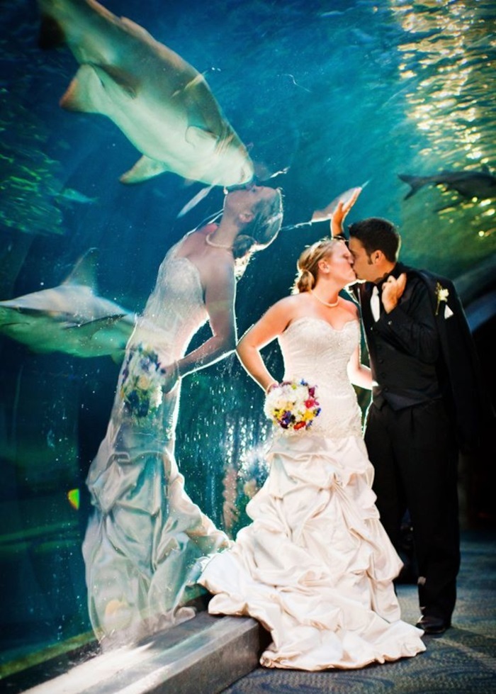 10. Utólag belegondolva: talán nem egy akvárium volt a legjobb hely az esküvői fotózáshoz.