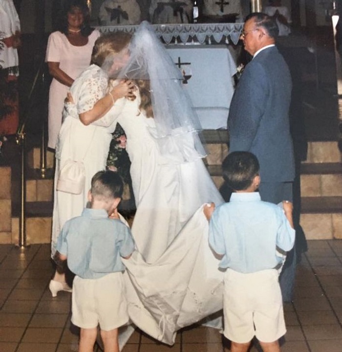 4. Kisfiúként rám bízták, hogy vigyem a menyasszony ruháját. Csakhogy folyt az orrom… és egy pillanat alatt megoldottam. A ruha bánja – és a gyerekkorom legkínosabb fotója is megszületett.