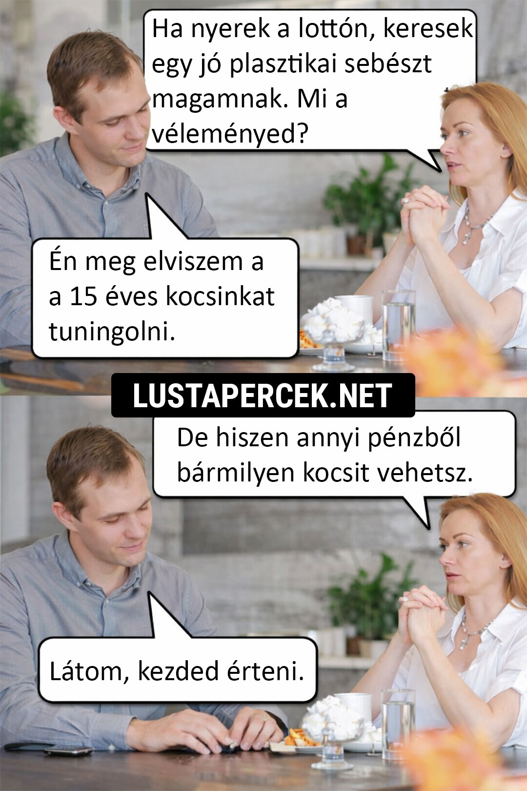 – Drágám… mondd csak, mit tennél, ha megnyerném a lottót?