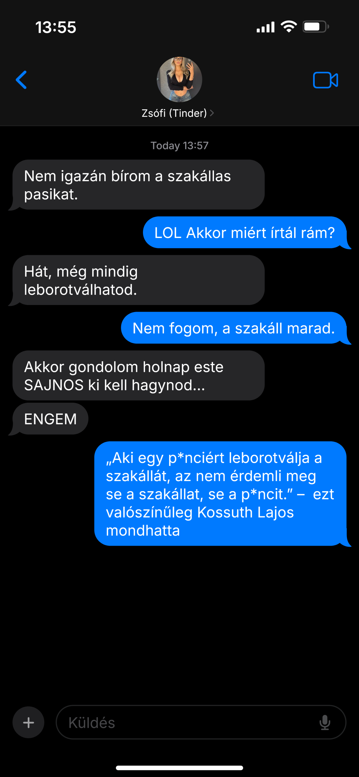 – Tudod drágám, a feleségem ragaszkodik hozzá, nem vághatom le.