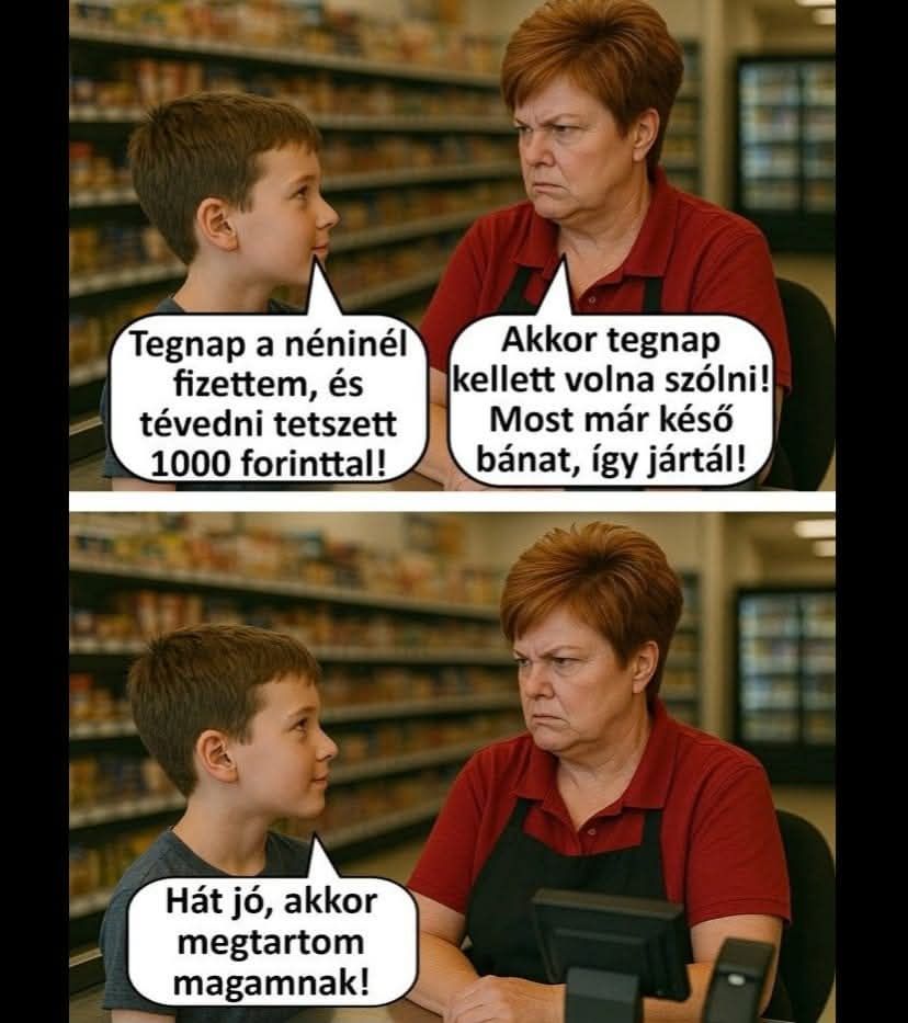 A vevő reklamál, hogy valami tévedés van, de a pénztáros azt mondja, hogy sajnos ennyi van ráírva, ennyit kell beütni.