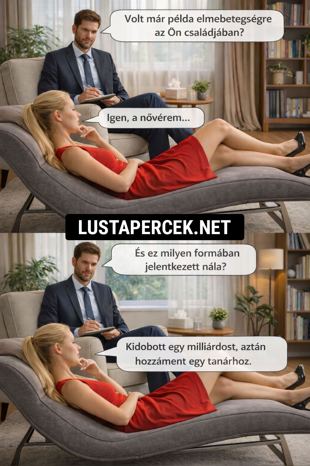 Egy újságíró riportot készít egy elmegyógyintézetben. A körbevezetés során kíváncsian kérdezgeti a főorvost.